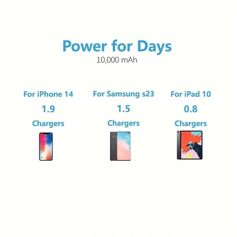 Capaciteit: 10.000 mAh, goed voor meerdere volledige opladingen van smartphones of andere apparaten