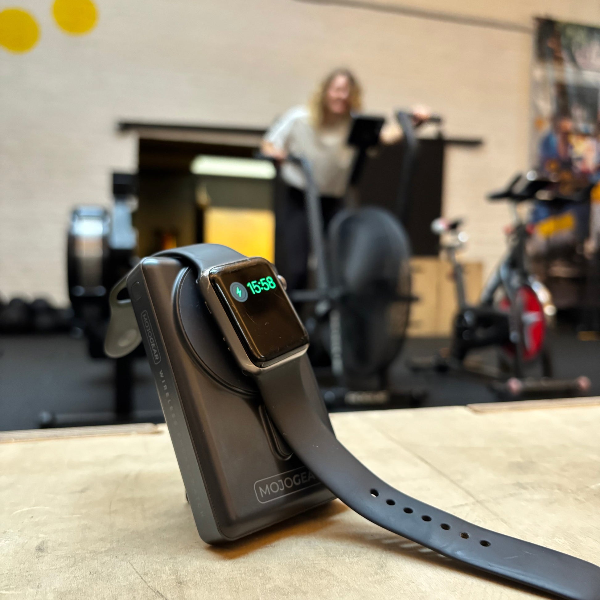 Ja, de powerbank heeft een geïntegreerde magnetische oplader voor smartwatches. Je hebt geen extra kabels nodig.