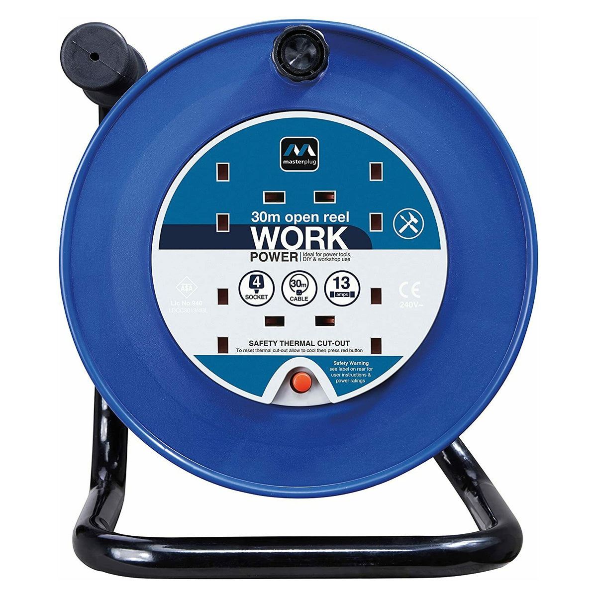 Masterplug Open Cable Reel 13A 4-Socket 25M 240V LDCC2513/4BL-MP
