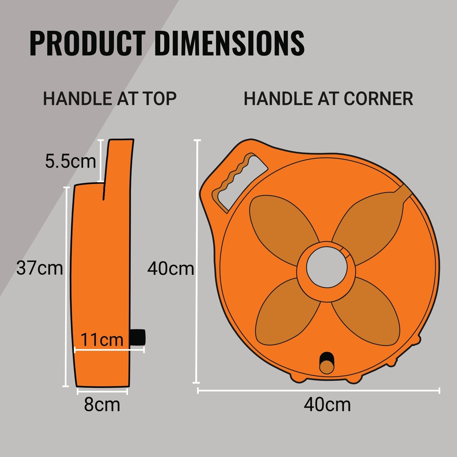 • Dimensions: 37 cm diameter; 44 cm including handle; 8 cm deep