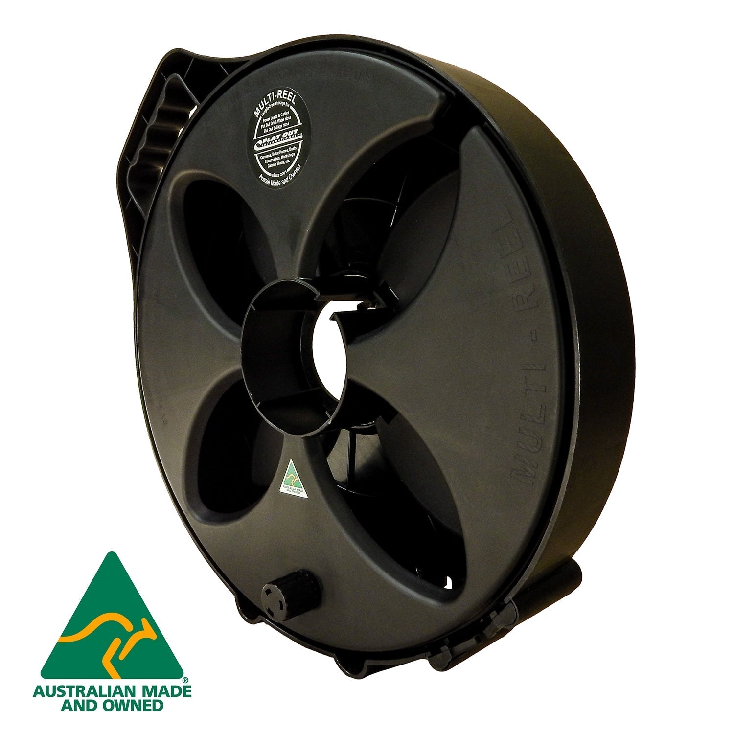 The highest capacity cable reel made by Flat Out.  The Original Multi-Reel will fit over 30m heavy duty extension lead and many other items, protecting your gear and keeping it tangle free.