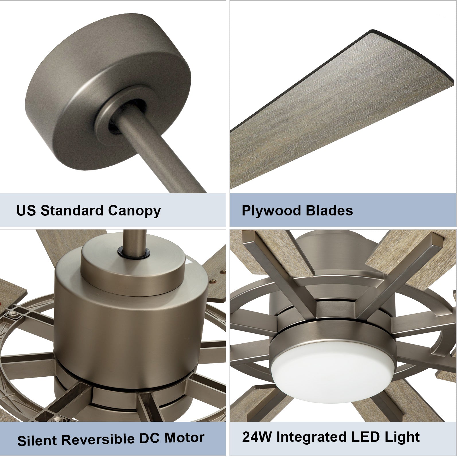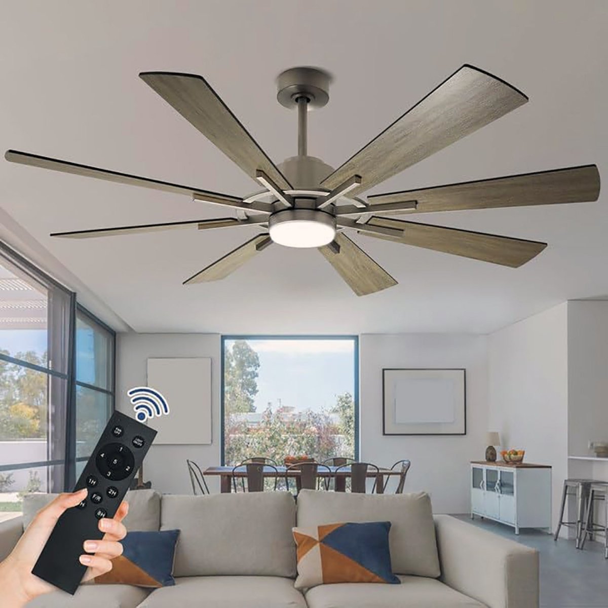 Plafondventilator Depuley 60” – Met Lamp – Geborsteld Nikkel & Grijs – 8 Bladen – Dimbaar – Stille DC Motor – Afstandsbediening en App