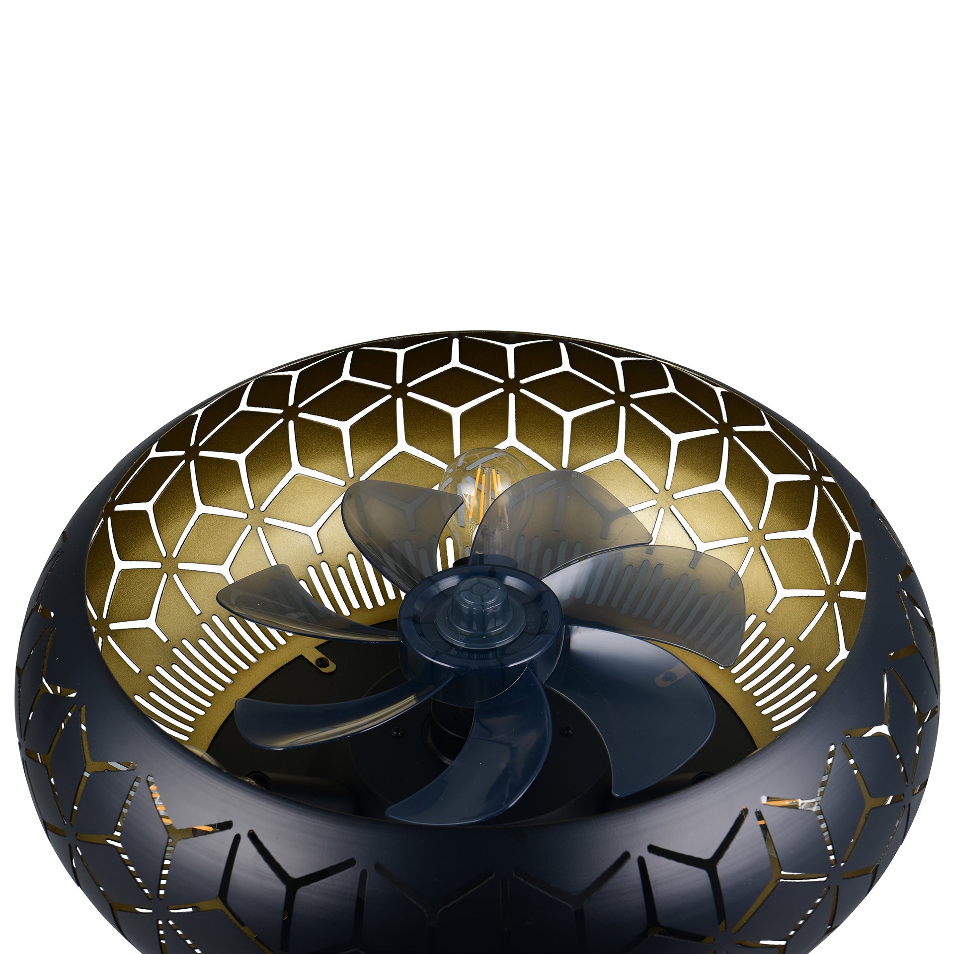Ontdek de perfecte combinatie van luxe design en praktische verkoeling met de Plafondventilator Elynn met lamp. Deze moderne plafondventilator met lamp is uitgevoerd in een stijlvol geometrisch metalen frame in mat zwart met een warmgouden binnenzijde, waardoor hij een elegante en warme uitstraling geeft aan elke ruimte.