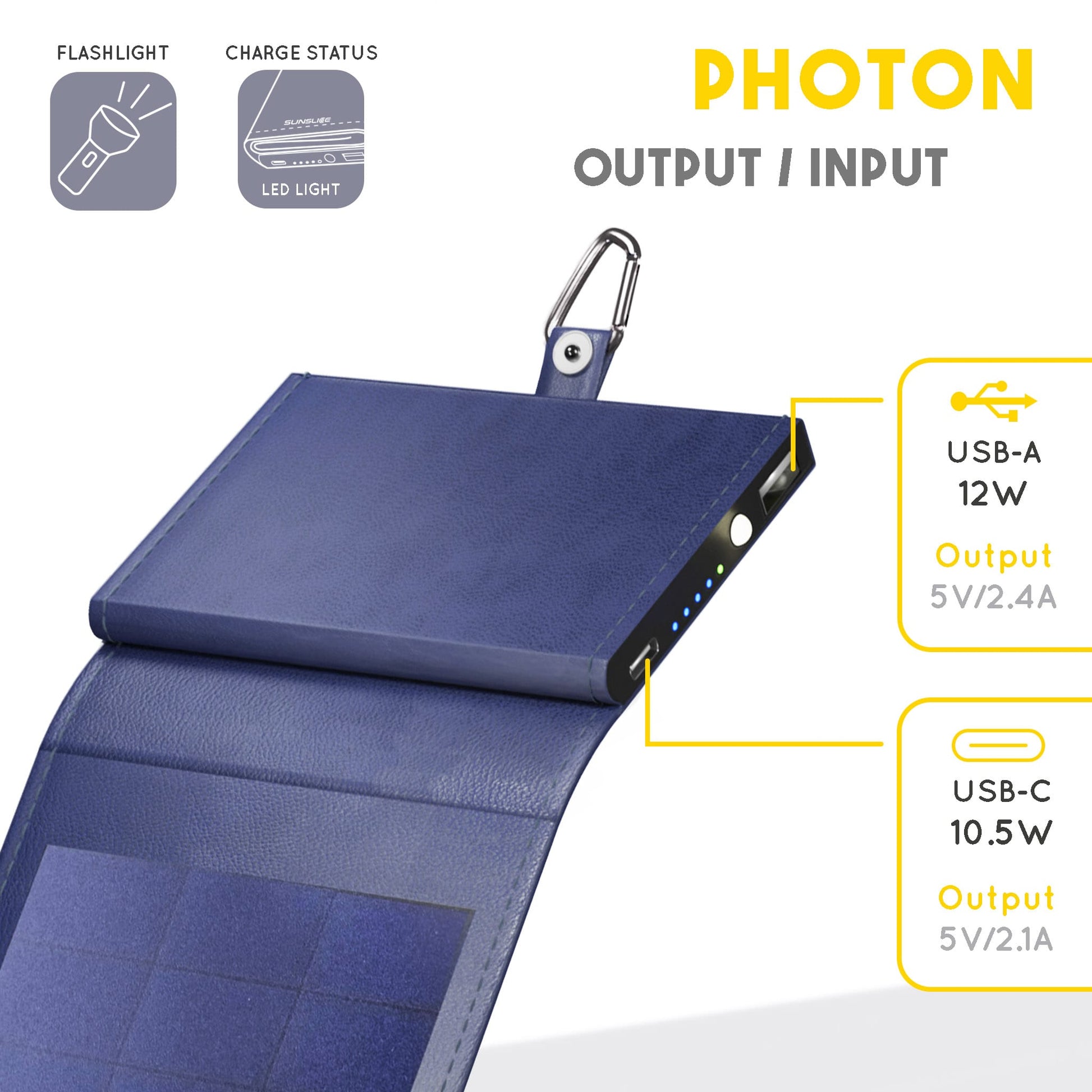 Ben je vaak onderweg en wil je nooit zonder stroom zitten? Ontdek deze ultra-compacte draagbare zonne-energie powerbank, de perfecte metgezel voor wandelaars, kampeerders en iedereen die graag buiten op avontuur gaat. Ondanks zijn kleine formaat levert deze solar powerbank indrukwekkende prestaties dankzij vijf hoogwaardige zonnepanelen met efficiënte fotovoltaïsche cellen.